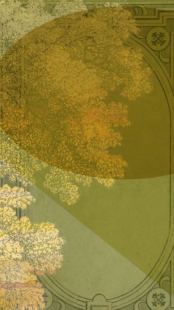I found this vintage etching of a forest of oak trees on the Met website and layered it with painterly fall colors to create, what is for me, the feeling of September colors. To me, September always carries this mix of beginnings and endings, back-to-school sharpened pencils and new routines, alongside the slow letting-go of summer’s brightness.